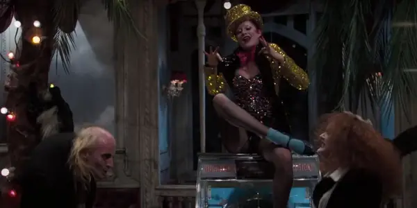 Cada personatge té maquillatge de pallasso exagerat , i un cotillet d’estil Can-Can amb boas de ploma, gronxadors de peix i guants sense dits de longitud. El ball que acompanya aquesta escena en aquests vestits és inoblidable, i la cama de Brad s’afegeix. La totalitat de Horror rocós Flips Rols de gènere, convertint -lo en un dels musicals de pel·lícules més influents de tots els temps. Aquesta escena fa especialment una feina meravellosa perquè tots els personatges porten el mateix, independentment del gènere, i tots semblen increïbles.