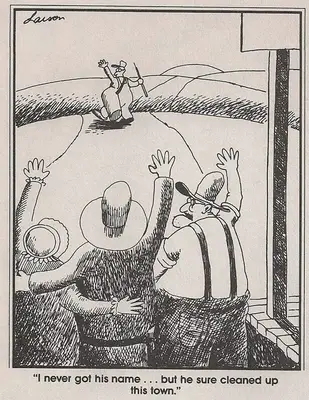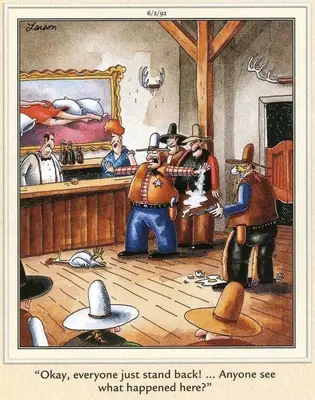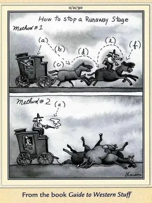 L’Occident Occidental era un lloc ple d’emocions, perills i llocs valents, però de vegades la vida no és una pel·lícula. Larson es refereix a la clàssica pel·lícula de Kýččový que trenca constantment les làmpades i va saltar al sistema per comprovar els cavalls, comprovar el proveïdor i decidir agitar regularment la làmpada per aturar el desastre. Aquest és el primer mètode descrit al llibre imaginari Larson. Manual Oest Pot ser una demostració heroica de la seva antiga ètica occidental. El segon mètode no ha de ser personalment perillós, sinó traumàtic per als passatgers. Inclou una detecció completa amb pedres controlades De fet, això no pot ser segur en aquesta àrea, però en una crisi així es recomana utilitzar el potencial, encara que sigui massa cruel per als animals.