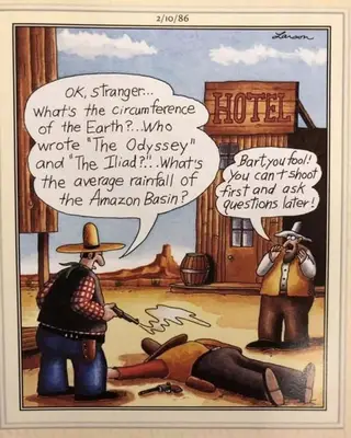 Gary Larson utilitza acudits intel·lectuals d’art de forma independent. A continuació, es mostren deu exemples de l’enorme biblioteca de Farida.