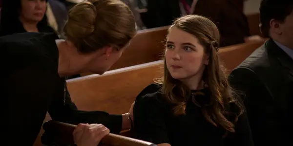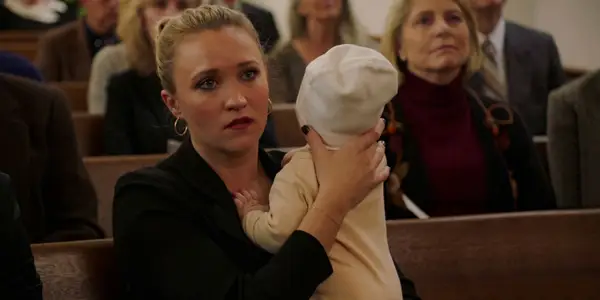 | Emily Osment | Mandy Cooper | Mandy McAllister (Emily Osment) va tenir una expressió seriosa mentre mantenia el seu nadó al funeral de George a la temporada 7 de la temporada 7 de l'episodi 13 |