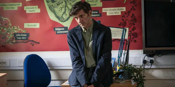 Mathew Baynton com a Eliot Ward en una guia de bona noia per assassinar assegut a una aula davant d'un tauler | Mathew Baynton | Elliot Ward |