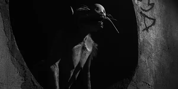 Pel que fa a la criatura en si, hi ha com una llegenda local a Escòcia, crec que en una figura anomenada Catman, i va ser aquesta llegenda urbana que crec que havia sentit a parlar en línia o en alguns podcasts. Va ser intrigant. Podríeu trobar una foto d’aquest noi que acaba de cobrir -se de la brutícia negra. Vaig pensar que era tan interessant i estrany. No podia arrencar completament Catman, així que d'alguna manera va néixer Ratman.