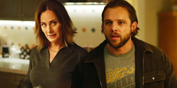 Diane Farr com a Sharon Leone i Max Thihier com a Bode Leone a Stills de Fire Country Season 3 Episodi 16.